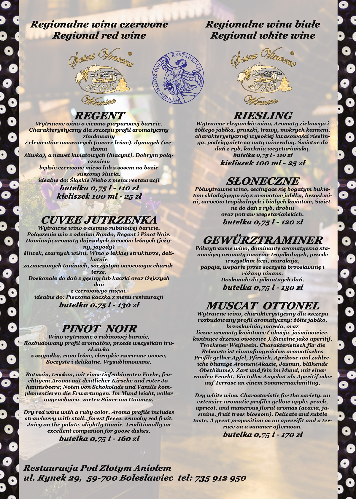 Aktualne MENU Restauracji.